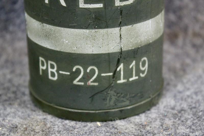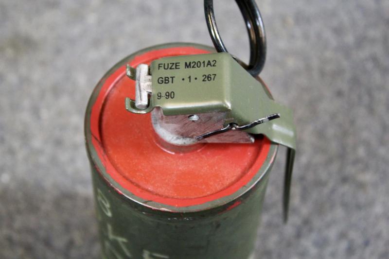 The M18 smoke grenade was first introduced during WW2 in 1942 and came in various smoke colours. The M18 smoke grenade continues to be uses by the U.S. military. This example is in excellent condition, red colour designation and has a September 1990 dated fuse. U.K. Sales Only