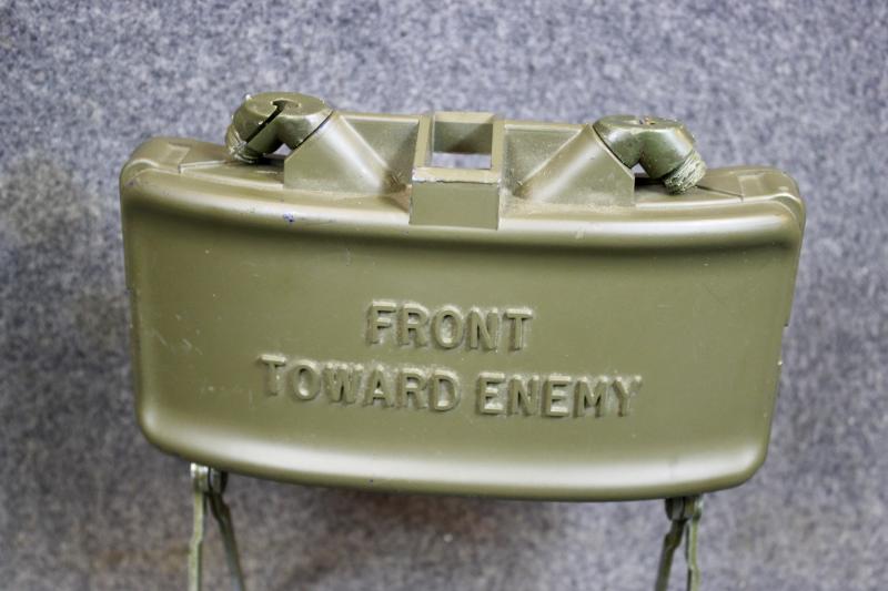 This is M68 practice training aid of the M18A1 claymore mine. It is identical to the M18A1. However it would have originally been painted blue to distinguish from a live M18A1 mine. However this example has been over painted green by an re-enactor. It comes with a inert M57 firing device, more commonly known as the "Clacker", a inert M40 circuit testing unit and a dummy blasting cap ( wire ). It also comes with the M7 pouch which retains its instruction sheet. U.K. Sales Only.