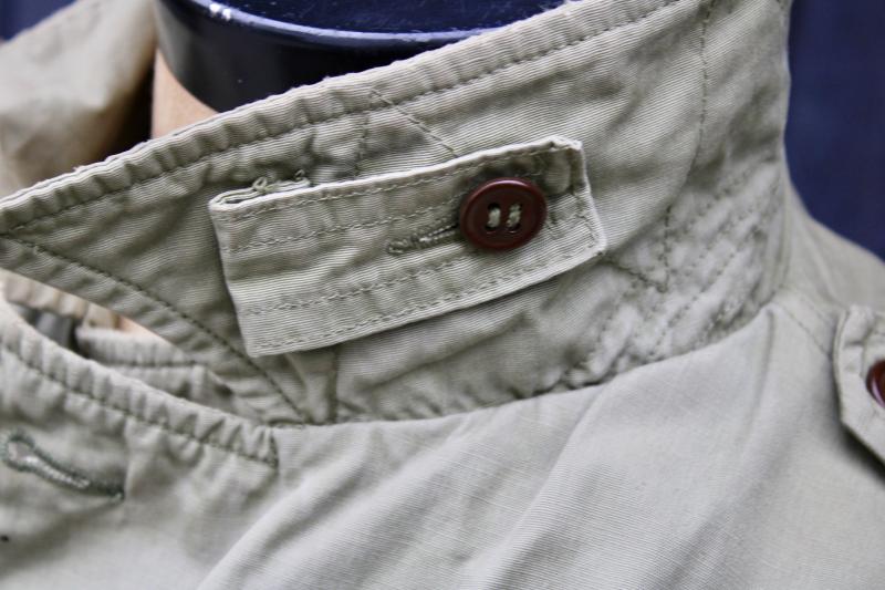 This is the 2nd pattern M41 field jacket, which has suffered with some minor fraying to the collar and a row of holes on the lower front. Which seems to have been made on purpose. However i have no ideal the reason behind the holes being made. The cuffs have not suffered with any fraying which is common on M41 jackets. The Talon zipper is in good working condition. One button is missing on the upper front.