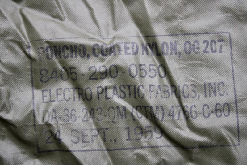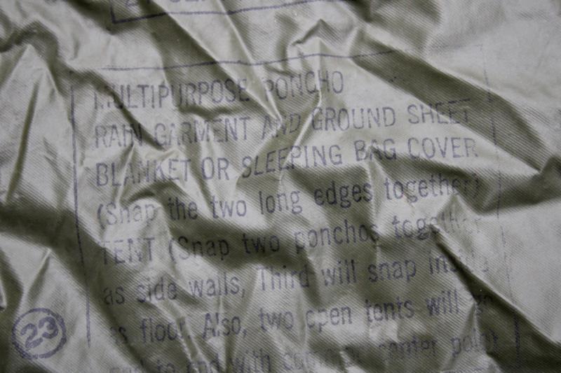 A unissued poncho which is dated 24th September 1959 and still retains its printed instructions.