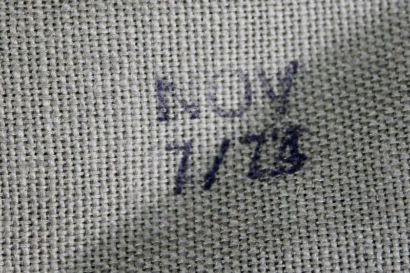 This is a ammunition bandolier which could hold fourteen 10 round clips or seven 20 round magazines for the M16 assault rifle. This example is maker marked 'NOV" and dated July 1974.