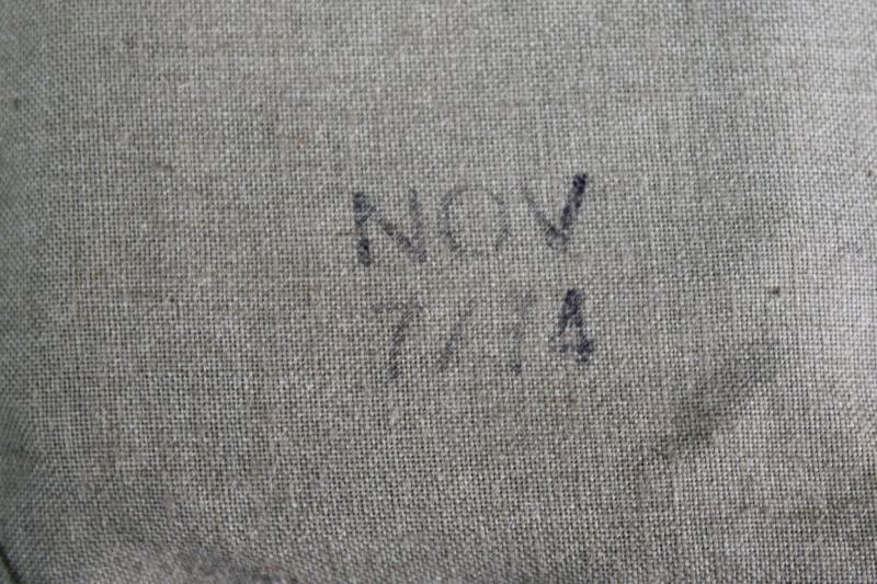This is ammunition bandolier which could hold fourteen 10 round clips or seven 20 round magazines for the M16 assault rifle. This example is maker maked "NOV" and dated July 1974. It comes with seven dummy 20 round magazines for the M16. All of which where molded from original magazines and have the Colt manufacturer's markings on the base.