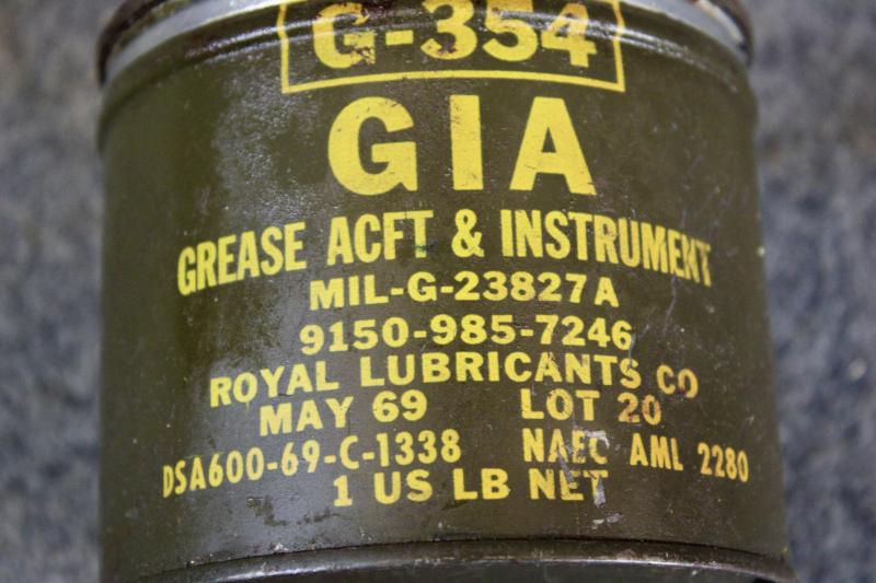 This is a sealed weapons lubricant tin, which is dated May 1969. This example is maker marked Royal Lubricants Company and is missing its can opening key.