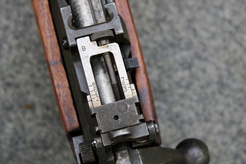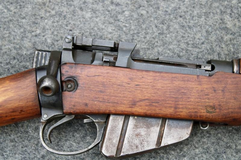 The No5 MK1 more commonly known as the Jungle carbine was developed by the British experience in the jungles of the far east, where the need of a light accurate weapon was needed. It officially entered service in September 1944 with 20,000 being produced by the end of 1944. A total of 50,000 jungle carbines where produced making true No5's relatively rare and sort for by collectors. However a number of No4 and No3 rifles where converted by the military and the civilian market in the 1950's and 1960's. However these are easily identifiable as the rear receiver is a different shape on the No5 rifle. This example is in near mint condition and is deactivated to the current EU/UK specification.It does not cock or dry fire, however the bolt will open and close and the magazine can be removed. U.K. Sales oNLY