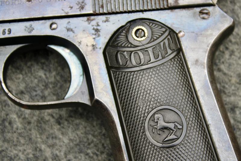 For sale to customers outside the European Union Only. This is a rare example of the Colt M1902 Sport model, designed by John Browning and was only in production from 1902 to 1908. The serial number of this example dates it to 1907. There was a Military model which was produced from 1902 to 1928, which was a larger pistol with an 8 round magazine and lanyard loop. Both models are in 38ACP. For Non EU Sales Only. However can be re-deactivated to the current EU specifcation. Please email before making purchase.