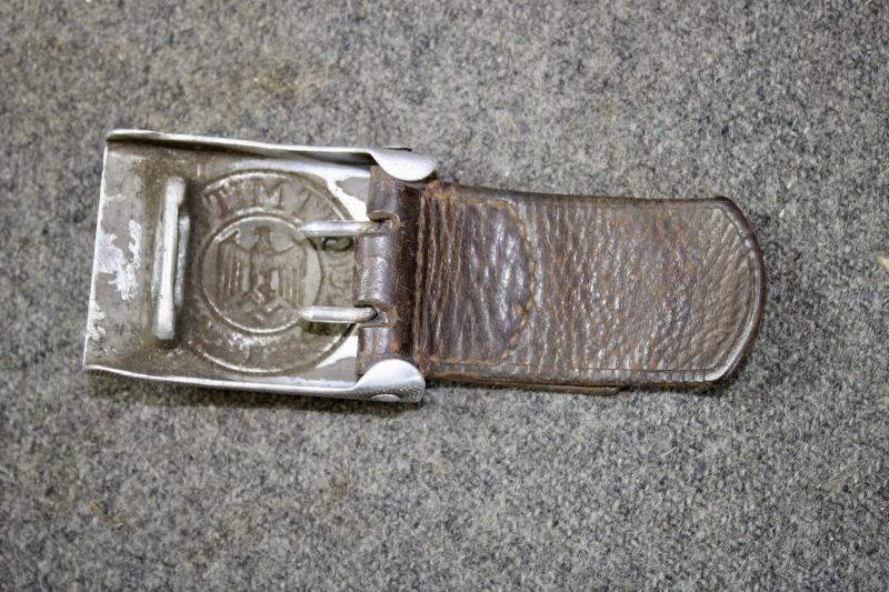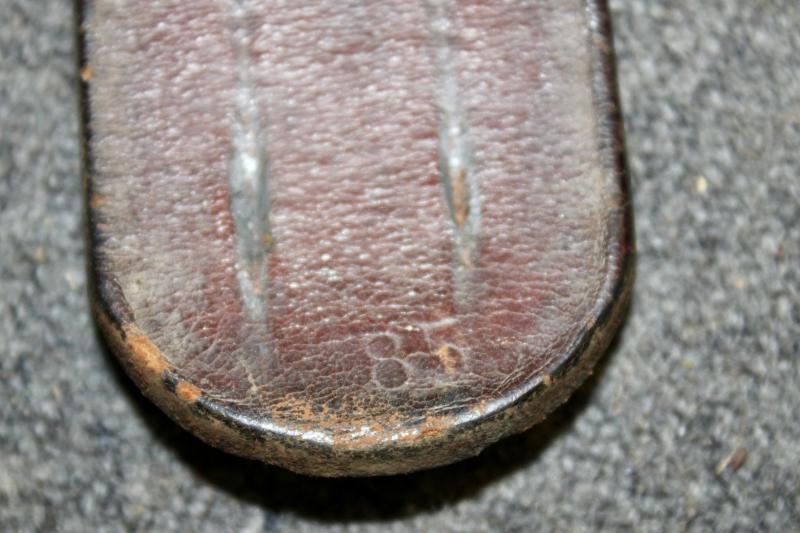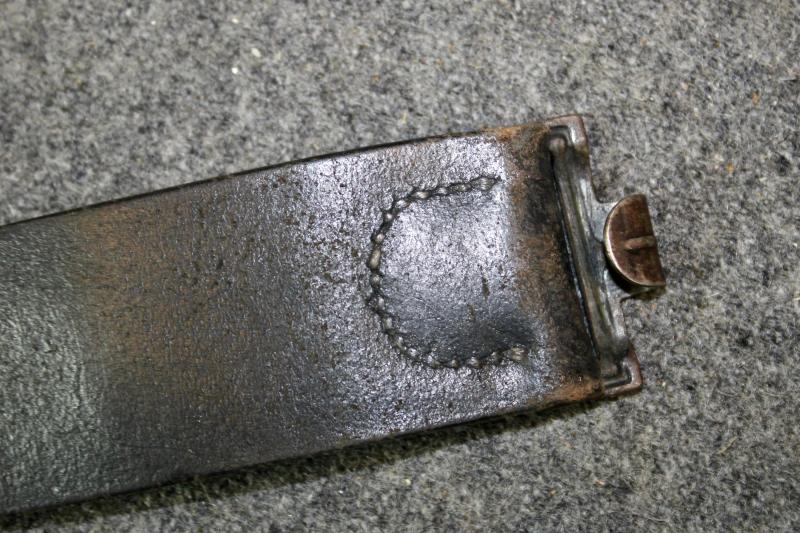 This army aluminium buckle which comes with its leather belt. The buckle's leather tab is dated 1937 and is maker marked. The leather belt is in very good condition and is size stamped 85.