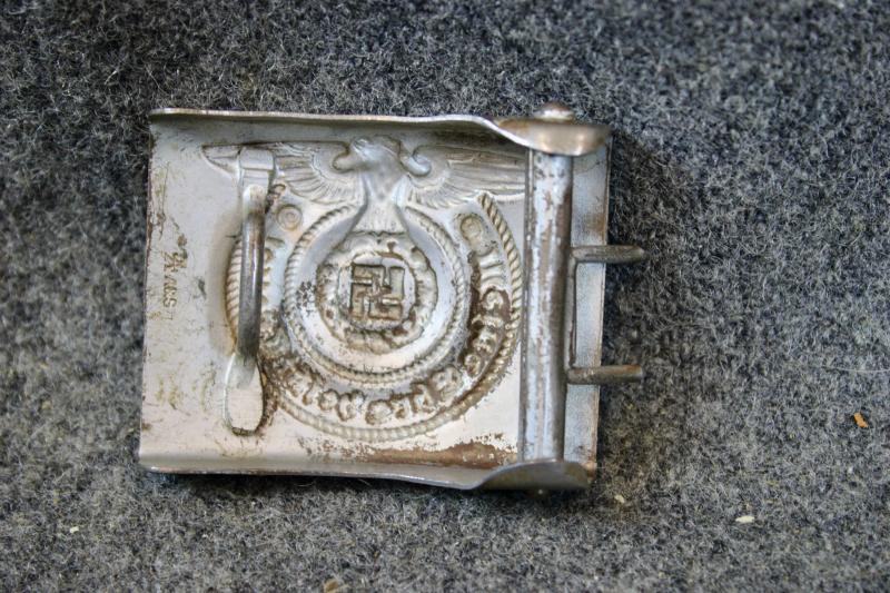 This is a mid-war made steel Waffen-SS belt buckle which retains 60% of its silver gilt finish. This example maker marked "A&S" for F.W. Assmann & Sohne.