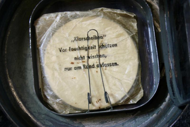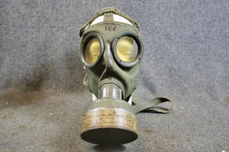 This is an early pre-war 1st pattern M30 gas mask which has a different valve snout, than the later examples .THhe valve snout was changed in the late 1930's. This example is in excellent condition and comes with a S-filter which is dated 1936 and Luftschutz marked. The canister is dated 1937 and retains its spare lenses still in their issue packet.