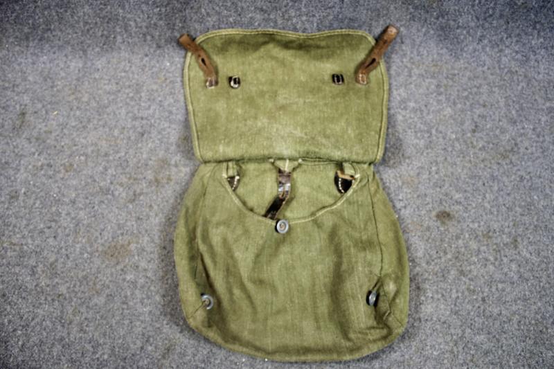 This is an early war M31 bread bag, which discontinued the leather re-enforcement as a war saving measure. This example is in good condition.