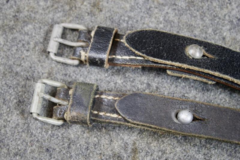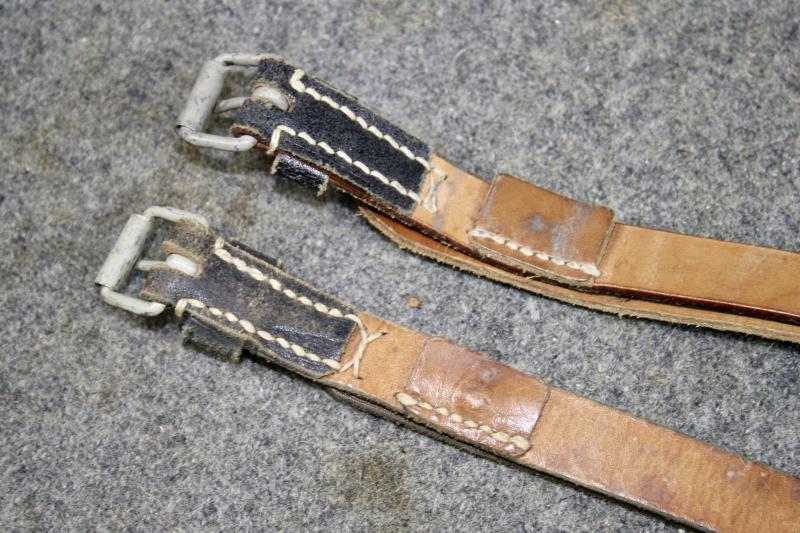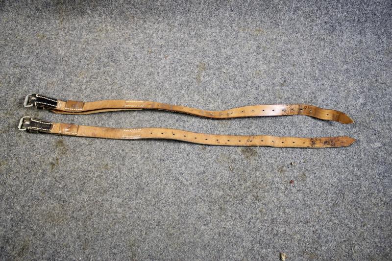 A set of Zeltbahn straps, which are both maker marked and dated 1942 and 1945 respectively.