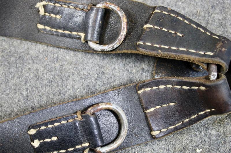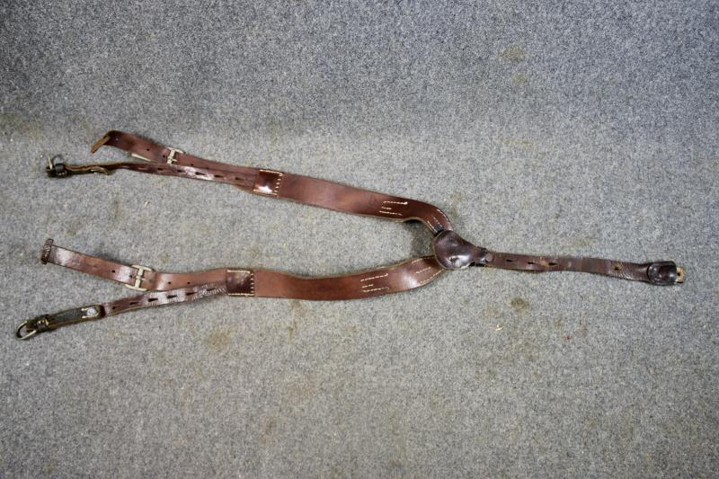 A set of y-straps which are maker marked "Franz Brehme Walsorde and dated 1942. The leather ring loops have torn but still attached. Still ideal for display.