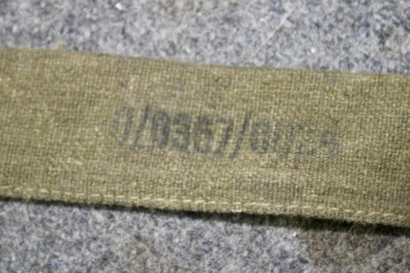 This is a Wehrmacht issue M31 bread bag shoulder strap which was also used for helmet camouflage. This example is RB numbered, which puts this example production date from 1943 to 1945.