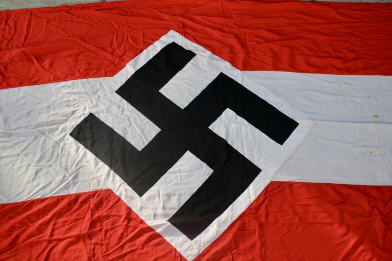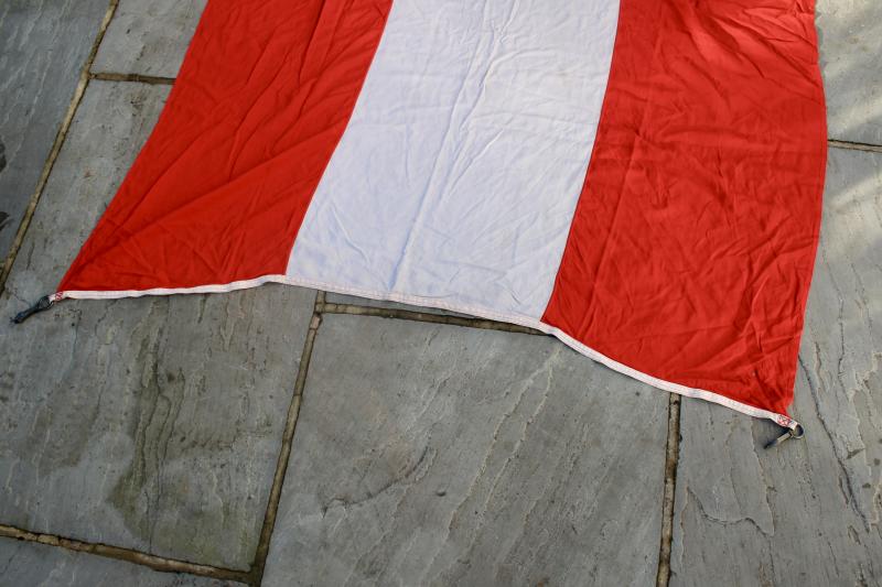 This is a a very nice example of a Hitler Youth drape flag which measures 12ft,4" x 4ft,2" ( 375cms x 128cms ). The flag retains both of its clips.