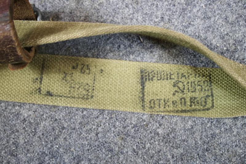 This is an unissued 1952 dated canvas sling for use with the Mosin Nagant rifle.