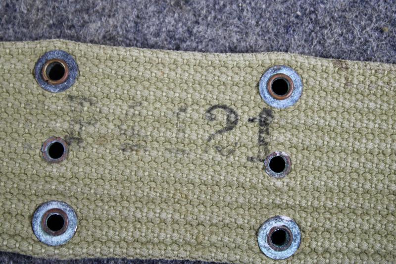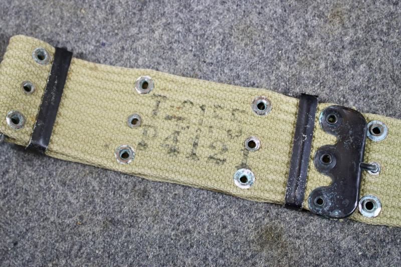 This is a 1943 dated M1936 pistol belt which is maker marked NASCO. This example was issued twice as it has two sets of personal service numbers and measurers 42 inches.
