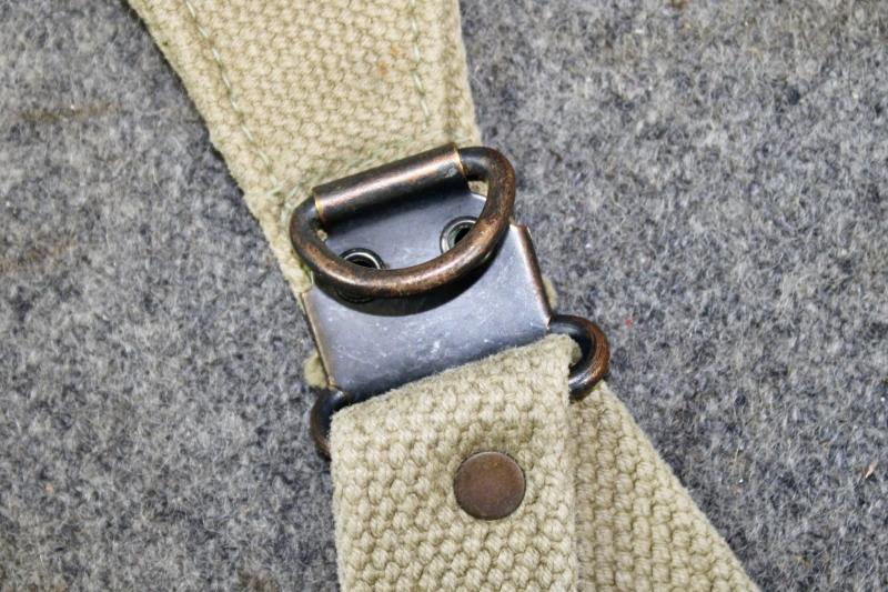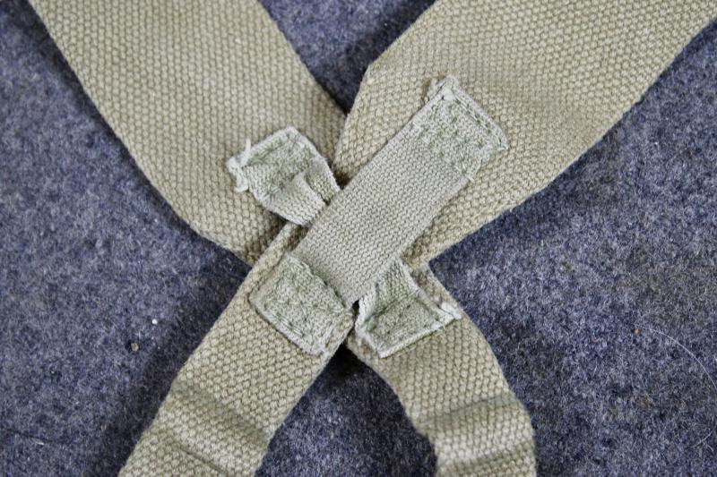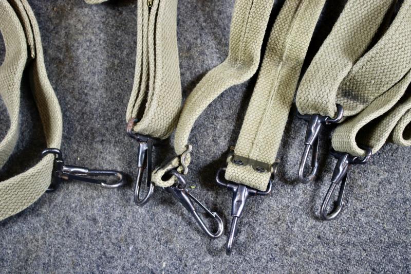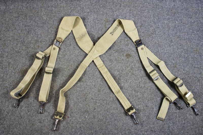 A set of M1936 suspenders which are maker marked Hanson MFG and dated 1942. This example is in good condition with all clips intact. They are also marked with the original owners personal service number.
