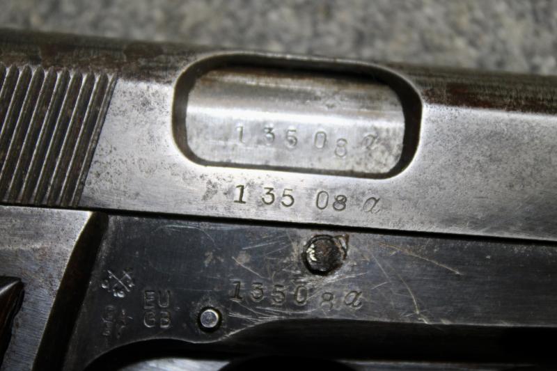 This is in fact a Belgium made GP35 Browning Hi-Power pistol produced under German occupation and would have been issued to the Wehrmacht, which designated the pistol as the 640(b). This example is maker marked Fabrique Nationale d'Armes de Guerre, matching numbered and with visible German acceptance proof markings. It comes with an EU/UK deactivation certificate U.K. Sales Only.