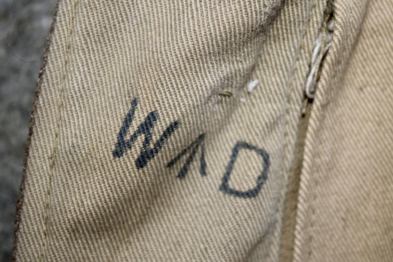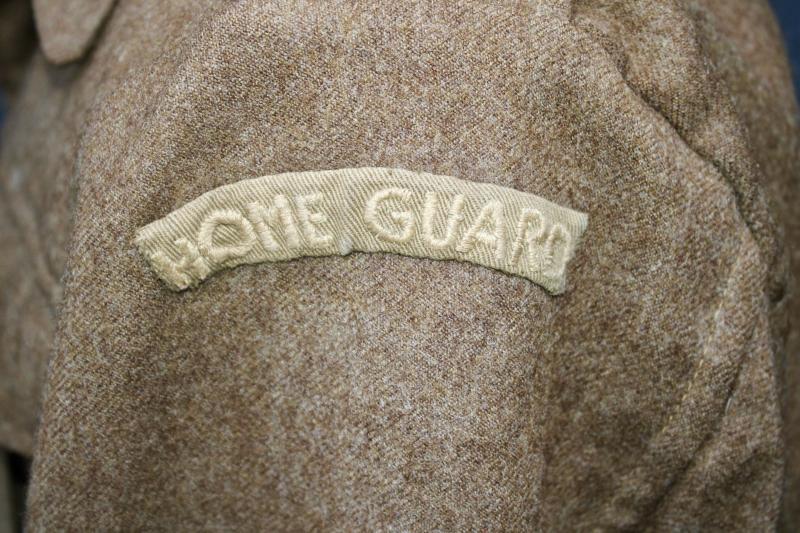 This is a Home Guard officers 37 pattern Battle Dress with the rank of captain. This example is in good condition and retains its contract label. However the details have been washed out. It is approximately a size 8 or 9.