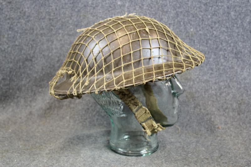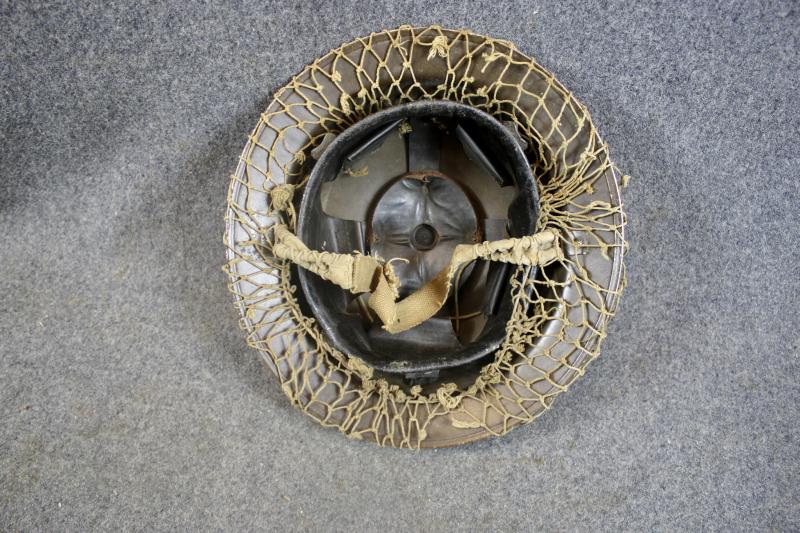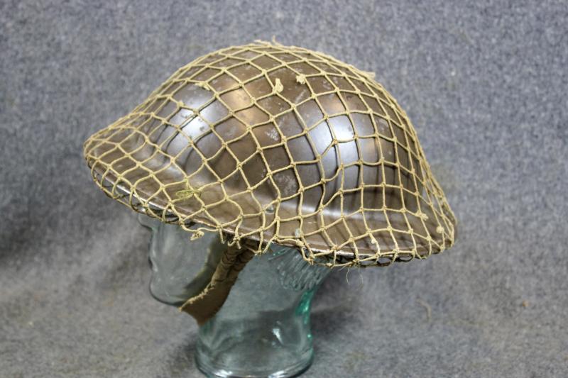 A very nice army MKII helmet retaining nearly all of its original finish and comes with a period camouflage netting. The shell and liner are both dated 1939. The MK1 liner is size stamped 7 and maker marked "Vero.