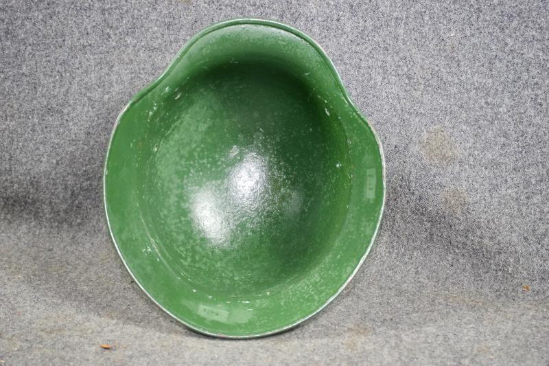 This is a M35 helmet shell which has been overpainted a gloss green. The shell has the batch number 3977 and size stamped 62 with the makers two letter code ET for Eisen-U.Huttenwerke AG. Ideal for an re-enactor to restore.