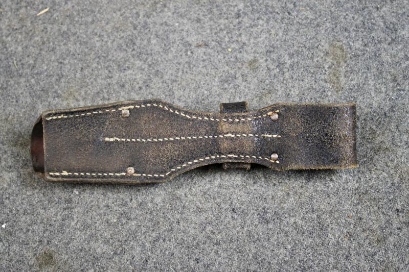 This is the cavalry bayonet frog for the S84/98 bayonet, more commonly referred to as the K98 bayonet. The cavalry frog differs from the standard bayonet frog by the additional pommel retaining strap. From 25th January 1939, the cavalry bayonet frog was issued to service branches.