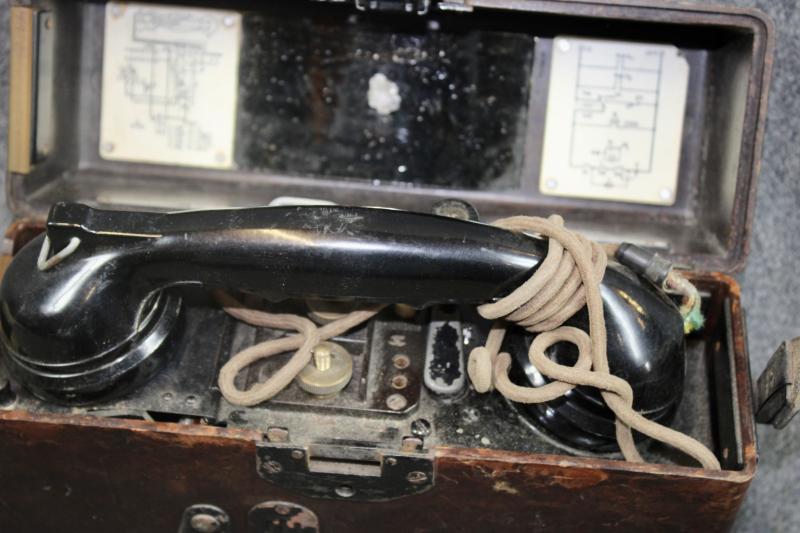 This is an M33 field phone, which is dated 1944 and comes with a post-war Norwegian leather shoulder strap. The Norwegian shoulder strap is identical to the German wartime examples. The only difference is the colour. However the shoulder strap can be dyed black or brown. The phone retains its German circuit diagrams, but is missing the German phonetic code plate which is normally fixed to the top of the lid. I have not tested the phone and can not confirm if it actually works or not.