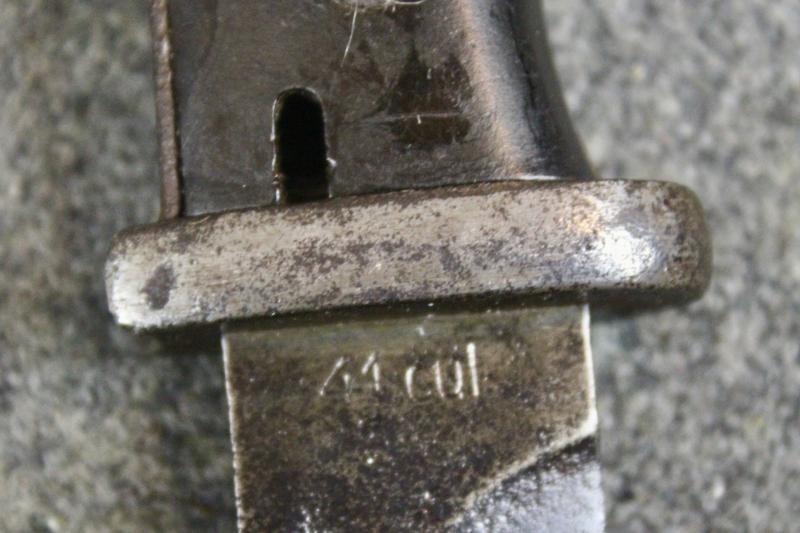 This is a 1941 dated S84/98 bayonet for use with the K98 rifle. This example has suffered with pitting to the blade and scabbard which is also missing its locking screw. The bayonet is maker marked with the manufacturers three letter code "cul" for Ernst Pack & Sohn, Stahlwarenfabrik. This is an age restricted item. Proof of age must be provided. A photograph of your Drivers Licence is required before the item is sent. U.K. Sales Only.