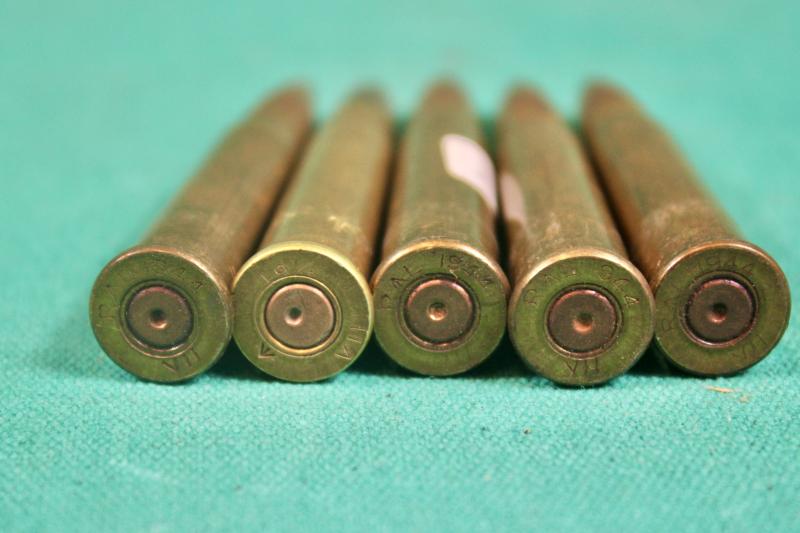 Five inert rounds of 1944 dated 303 Rounds on a MKII charger clip. U.K. Sales Only.