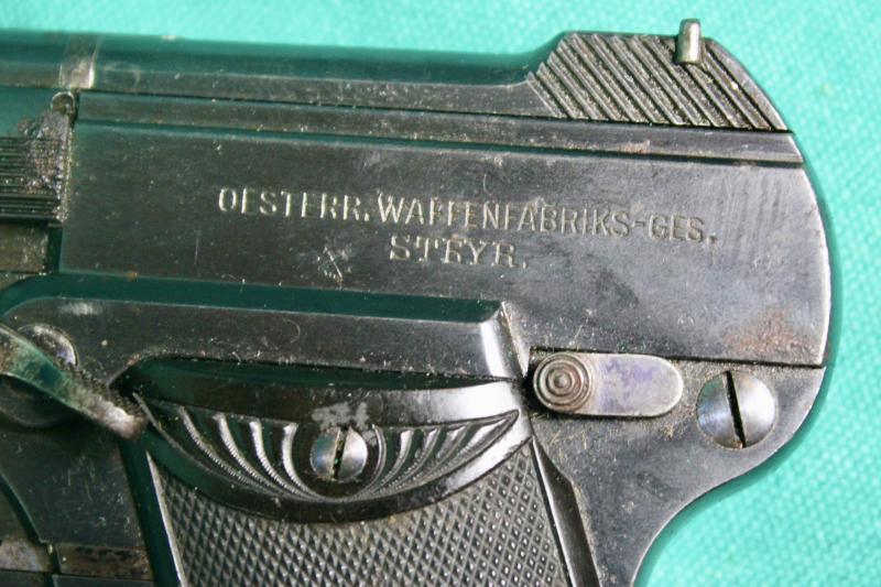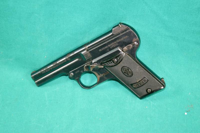 For sale to customers outside the European Union Only. The Steyr M1909, which was designed by the Nicholas Pieper Company of Liege, Belgium. The Pieper company manufactured a small number under their own name. However the principal manufacturing was done at Steyr and the gun was issued in small numbers to the Austro-Hungarian police. A number where export to other European countries for Police use. This example was export to Switzerland and has the Swiss cross and patent number. The serial number dates this examples manufacturer to 1909. For Non EU Sales Only. However can be re-deactivated to the current EU specification. Please email before making purchase.