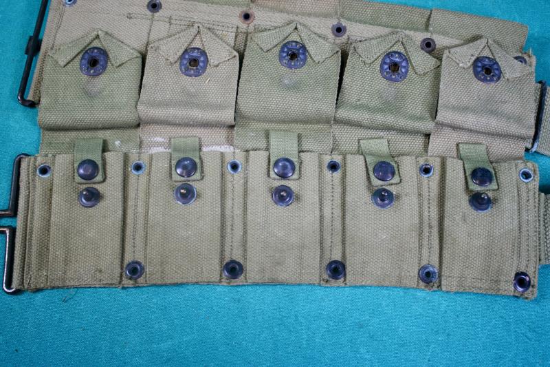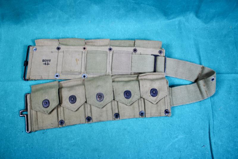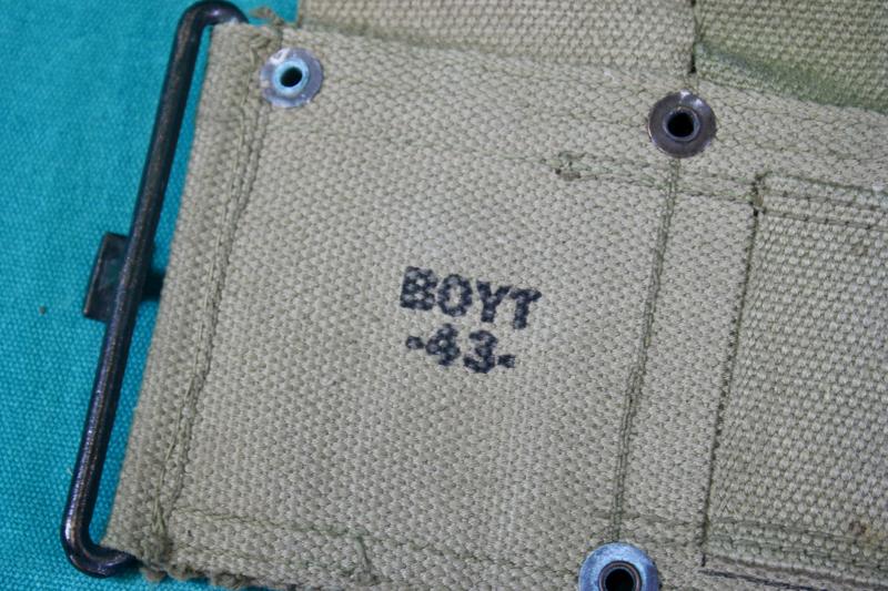 This is unissued Marine Corps marked M1923 ammunition belt which is maker marked Boyt and dated 1943.