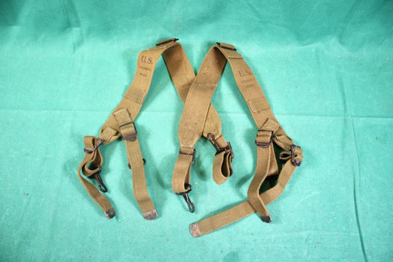 A set of unissued M1944 suspenders which started to appear in the European Theatre of Operations from July 1944. This example is maker marked and dated 1944.