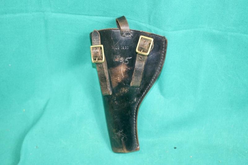 This is a M1903 leather holster for the use with the .38 revolver such as the Webley MKIV, Enfield No2 MK1 and the Smith & Wesson victory. This example dated 1961 and is probably police issue.