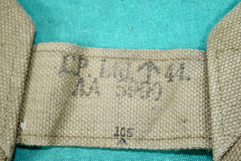 This is an unissued carrying harness for use with the Bren gun sustain fire mount. This example is dated 1944 and maker marked D.P.LTD